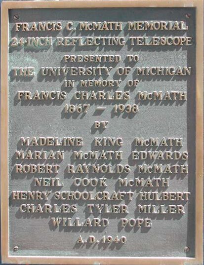 The McMath-Hulbert telescope has a rich history being the first instrument to actively study our Sun. It was built specifically for this purpose by its namesake Dr. Francis McMath. Originally installed at the McMath observatory north of Pontiac around 1938, it was moved to its current location in 1959. The University has transferred control of the McMath-Hulbert telescope to the University Lowbrow Astronomers in 1979. The McMath serves as the primary instrument used for visitor viewing during Open House events.