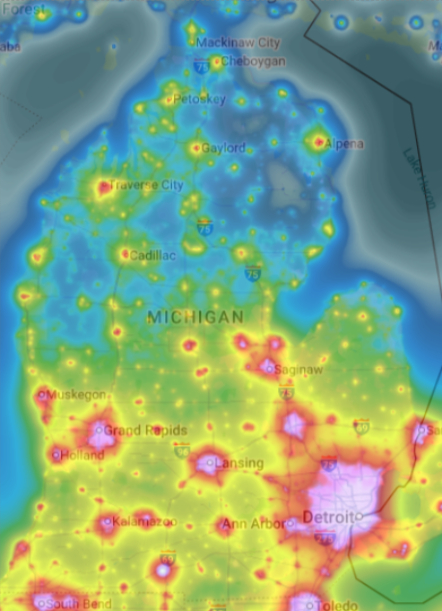 In many locations, the number of visible stars has been reduced by half or more. Only the brightest objects are easy to see, the Milky Way and other dimmer objects are invisible.